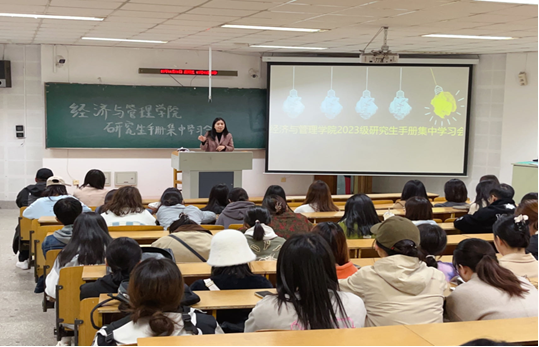 米乐官网于11月初在通明楼138教室召开《研究生手册》集中学习,研究生辅导员张丽老师向同学们介绍了《研究生手册》主要内容,重点解释了学校奖助工作管理办法、研究生宿舍管理以及学位授予工作细则等关键信息,并向大家阐释了这些制度设立的背景和意义,详细解答了学生们的困惑。
