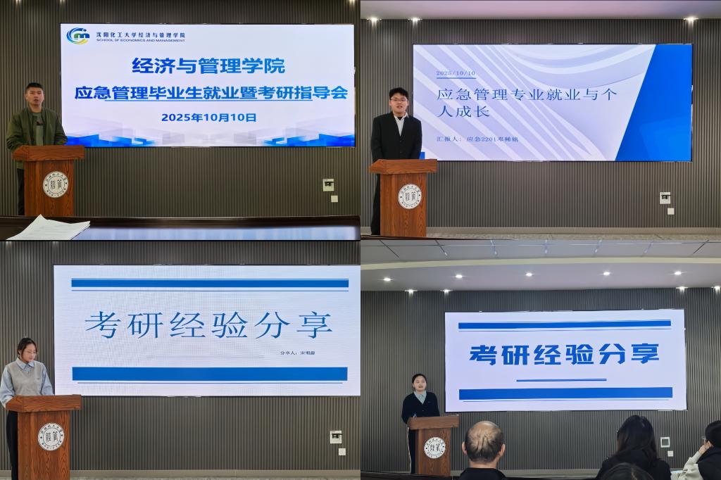 应急2201班邓稀铭已与中化四建成功签约,作为就业典型,更好地发挥朋辈作用,学院邀请邓稀铭在六场指导会中围绕成长经历、面试准备等内容与全体毕业生进行交流。作为班长,还围绕如何组织带领同学们实现就业进行汇报。25级硕士研究生宋明蔚、于欣鹭为毕业生分享考研全流程“实战”经验。汪新宇结合时代需求,以“明晰路径、借鉴定制、积极行动、互帮互助”为主题进行就业指导。于铭结合行业“强监管、重创新”趋势,建议学生做好就业考研选择。葛安茹以数据实例,剖析行业“竞争白热化、需求趋紧”的现实情况。殷艳娜、陈涛,结合各自专业领域,为同学们介绍了简历优化技巧及面试中应对行业热点问题的思路。边晶梅从毕业年级的学习方式、面试技巧、求职态度等方面为主要内容,为学生们上了一堂生动的就业指导课。