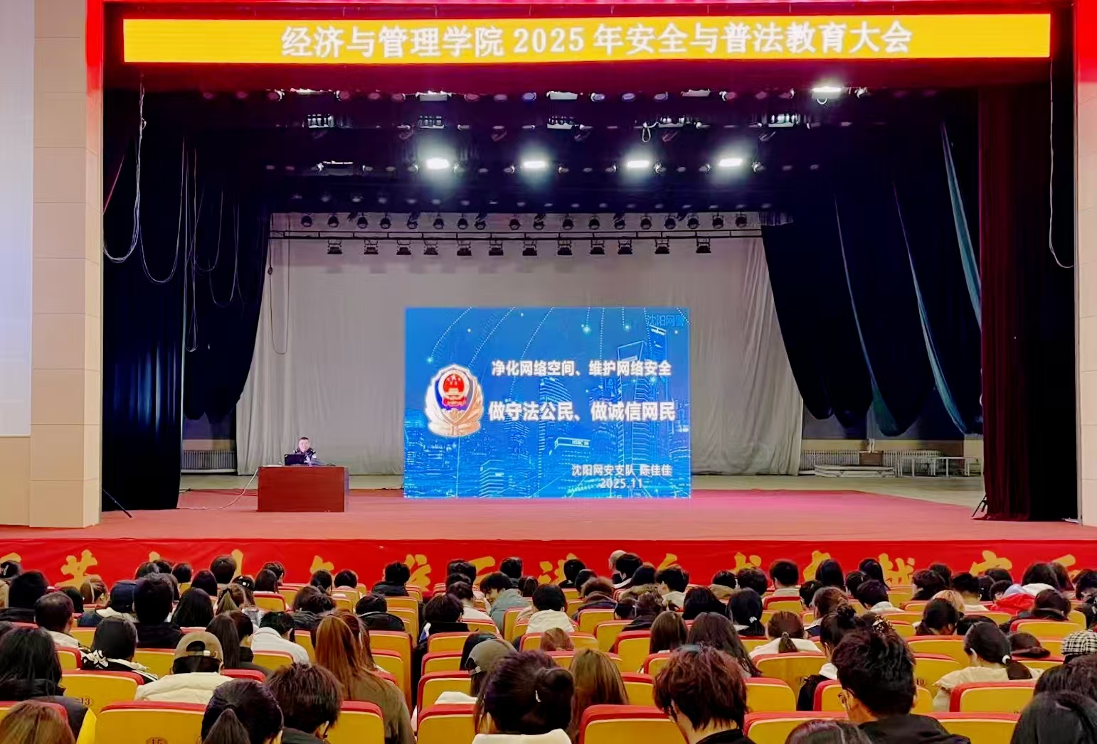 为全面提升师生安全防范意识与法治观念,努力营造安全、稳定、清朗的校园环境,MILE米乐集团于11月4日在大学生活动中心成功举办2025年安全与普法教育大会。学院党委书记李丙文、沈阳市公安局网络安全保卫支队警官陈佳佳、学校保卫处相关负责人以及学院本科、研究生等1000余名师生代表出席会议。