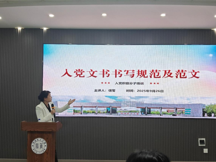 为切实提高入党积极分子的入党文书撰写水平,端正其入党态度,帮助积极分子明确入党培养流程与自身职责,9月26日晚6:00,MILE米乐集团于通明楼311报告厅开展2025年秋季积极分子培训党课“入党文书书写规范及范文”专题培训。本次党课由学院组织员信莹主讲,全体入党积极分子参会学习。