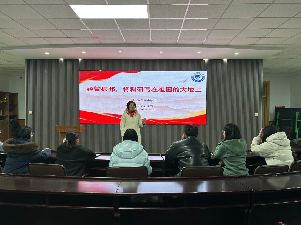 培训伊始,王蓉教授结合当前国家经济发展形势,深刻阐释了经济高质量发展的内涵。她指出,经济管理类学科作为支撑国家经济社会发展的重要学科,肩负着为国家培养高素质经济管理人才、提供高质量科研成果的重要使命。学生党员作为学生群体中的骨干力量,更应主动树立胸怀家国、勇担使命的责任意识,始终把个人理想追求融入国家发展大局。既要立足学业深耕细研,锤炼过硬本领,更要胸怀“国之大者”,主动对接时代需求,将个人专业所长与国家战略发展、社会民生所需紧密结合,在科技创新、乡村振兴、文化传承等广阔天地中找准定位,以青春之力回应时代召唤,让个人成长的轨迹始终与国家进步的步伐同频共振。